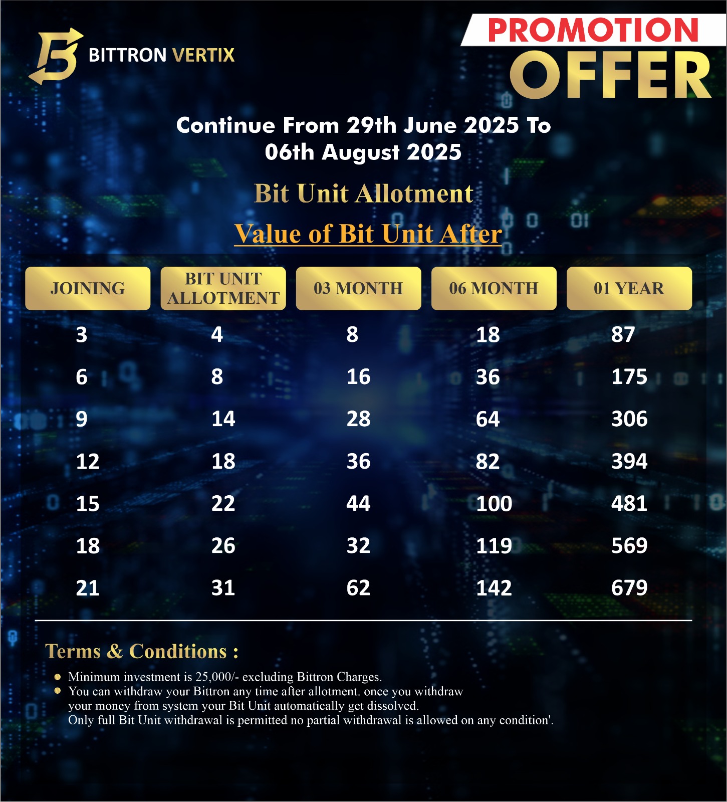 Bittron Vertix is a next-generation arbitrades trading platform for forex as well as crypto trading company committed to empowering traders across the globe with intelligent tools, advanced analytics, and a secure trading environment. Designed for both beginner and professional traders, Bittron Vertix offers a seamless platform that combines AI-powered trading bots, real-time market insights, and personalized strategies. Headquartered with a global outlook, our services are actively used in India, UAE, UK, Singapore, and several other countries, supporting a diverse and growing trading community. With a focus on transparency, speed, and client success, Bittron Vertix is not just a trading platform — it's a reliable partner in your journey toward financial independence and global market access.